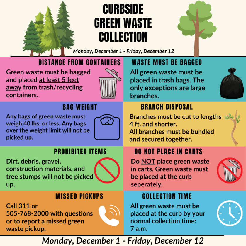 Fall Yard cleanup: Is scheduled Dec 1-12th. Please help support our neighborhood by clearing your front, side (on corner lots) and back property along the alley (if you have one) of weeds, debris, tree branches etc. Green Waste must be 5 feet away from trash/recycling containers. Do not place green waste in your recycling cart. If you need assistance with the work, please contact us at annapresident505@gmail.com. Let’s help keep our beautifiul neighborhood beautiful!